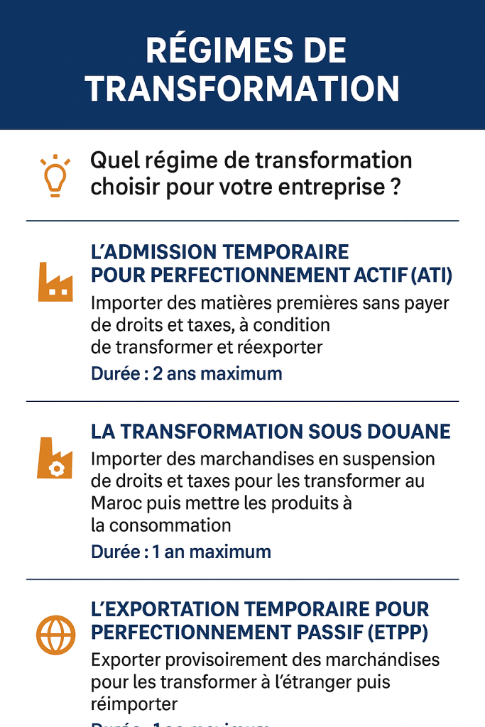 Les régimes de transformation représentent un levier de compétitivité pour les entreprises marocaines, en particulier dans les secteurs industriel, textile, agroalimentaire et mécanique. Bien utilisés, ils permettent de réduire les coûts, d’améliorer la trésorerie et de renforcer l’intégration dans les chaînes de valeur mondiales.